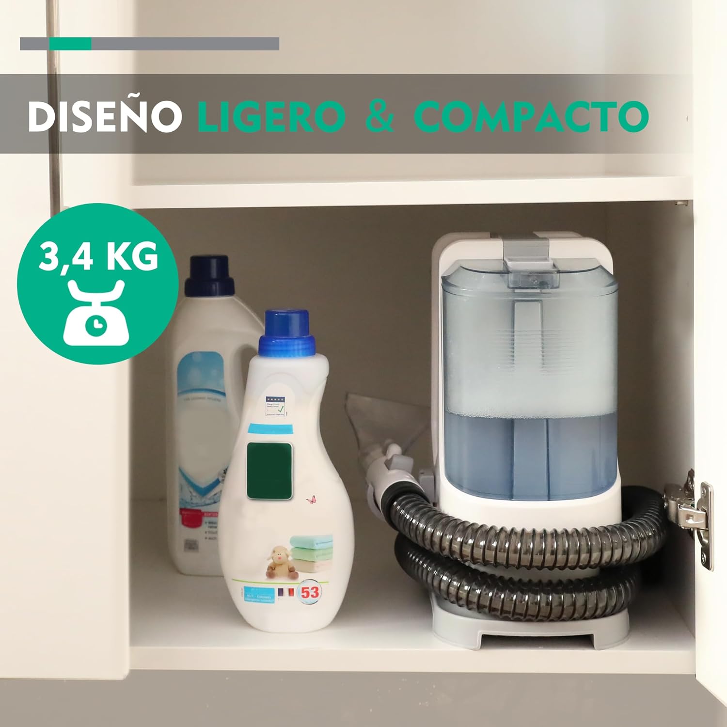 Está diseñado para limpiar tapicerías, alfombras, sofás, colchones, asientos de coche y otros tejidos. También puede utilizarse en superficies duras para eliminar pequeños derrames.